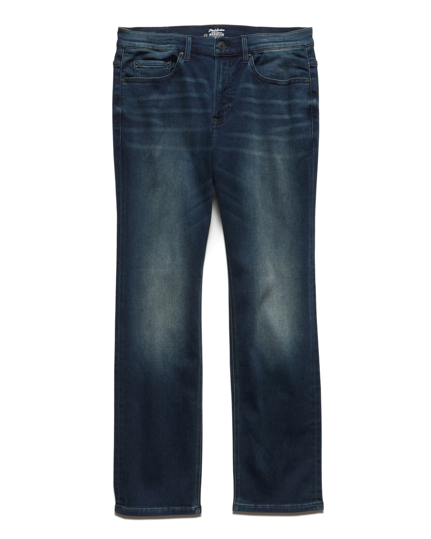 With its casual look and broken-in feel, denim has always been an old favorite. But sometimes all you really want to wear is sweatpants. So, what’s the solution? MadeFlex Clutch Comfort Jeans. Everything you love about tried-and-true blues, updated to be more breathable, comfortable, and lightweight. Featuring a classic straight leg look with just the right amount of stretch, this super-soft knit jean is the perfect mix of all-day comfort and everyday style. Regular rise. Traditional 5-pocket styling; zipper fly with logo button closure. Leather logo back patch. Dark wash.