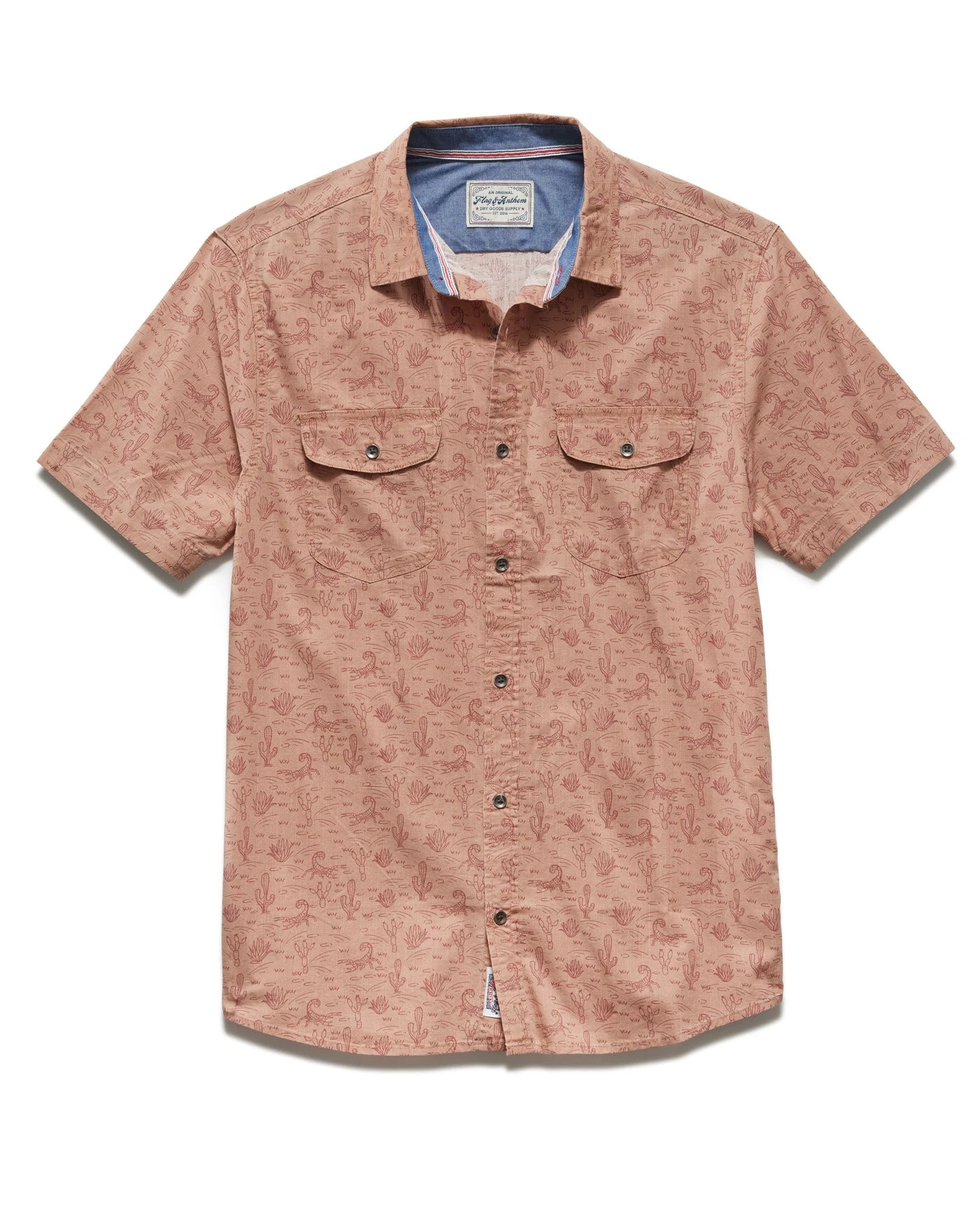Take yourself on new adventures in our Moab Desert Print Short Sleeve Shirt. Made from lightweight and breathable cotton featuring an all-over desert-inspired print, itโs comfortable, versatile, and easy to wear. Contrast fabric inside collar stand, back yoke, front placket, and sleeve cuffs. Dual front flap pockets; button closures. Tailored athletic fit.