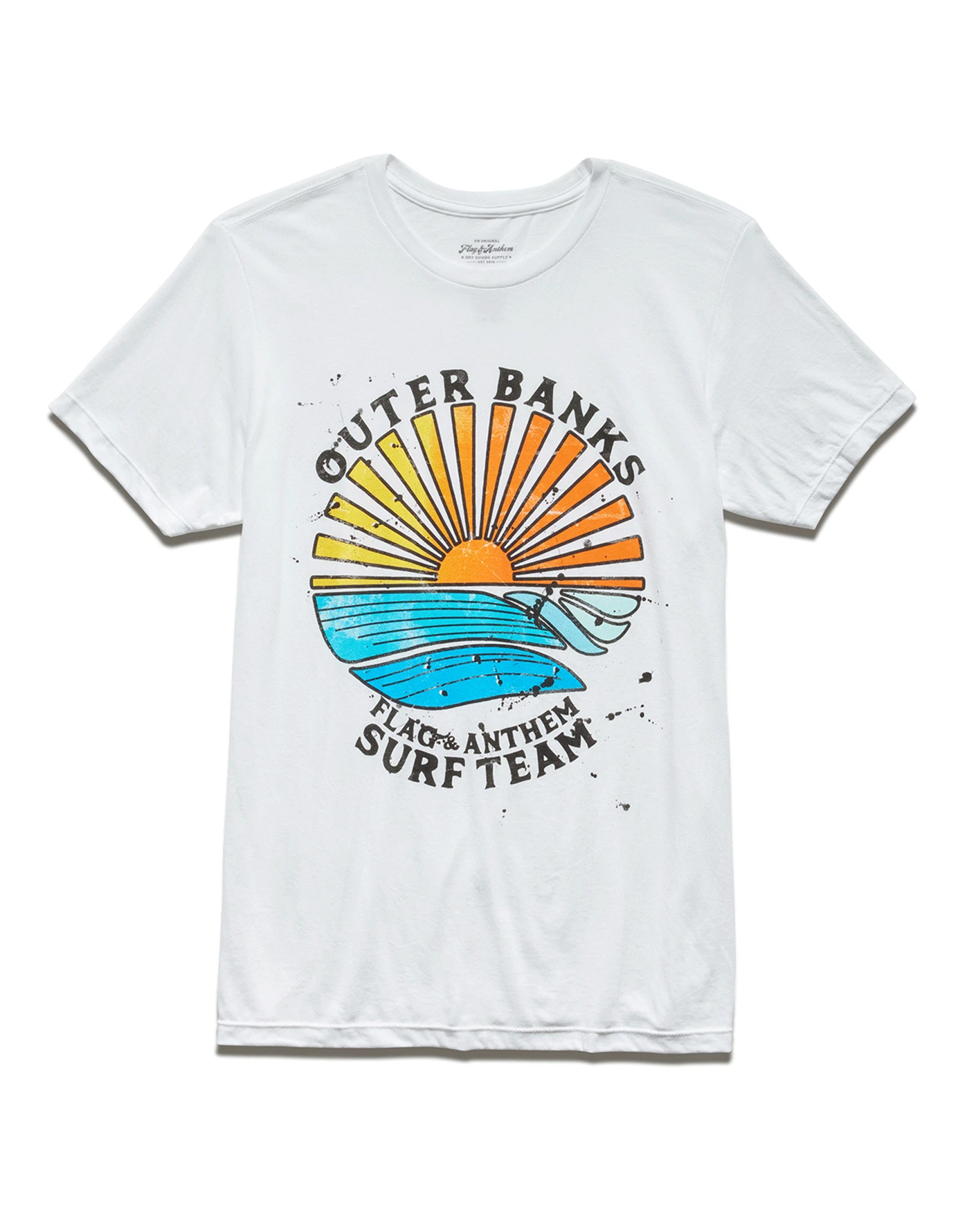 Made from supremely soft pure cotton in a tailored athletic fit, this ultra-comfortable slub cotton crewneck is a must-have addition to your casual, warm-weather rotation. Featuring all-original Flag & Anthem artwork that radiates summery vibes, this jersey tee is perfect for anyone seeking sun, surf, and relaxation.