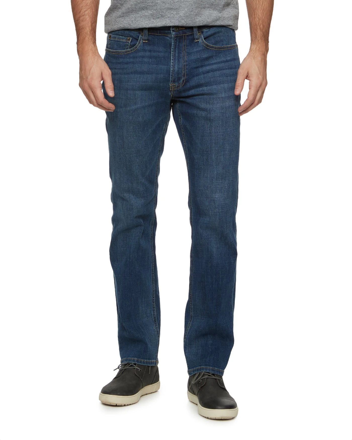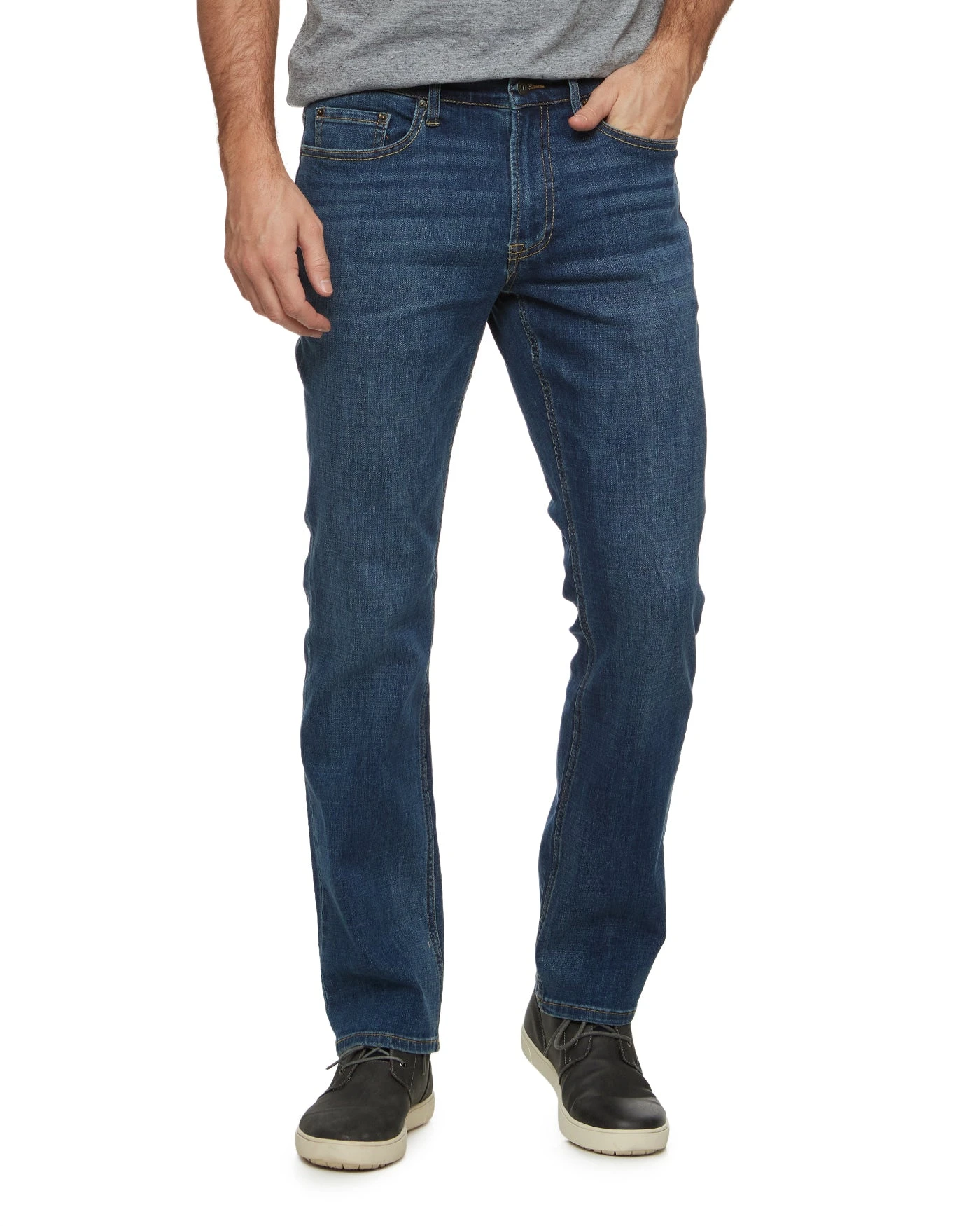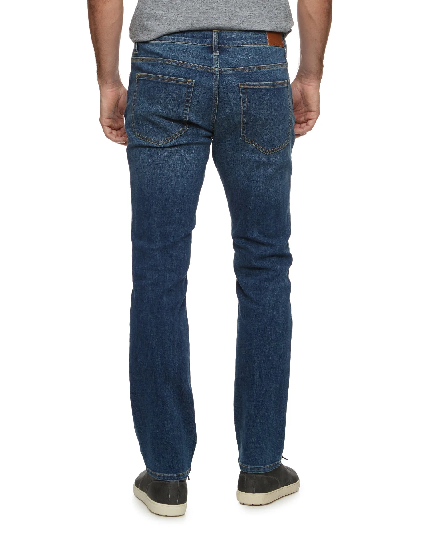 All-day comfort comes easy in our premium stretch denim jeans. Ideal for everyday casual wear, our slim-fit Sterling Jean features a clean, tapered leg, traditional 5-pocket styling, and a hint of spandex for a more flexible fit. Regular rise; zip-fly front with logo button closure. Leather logo back patch. Medium wash.